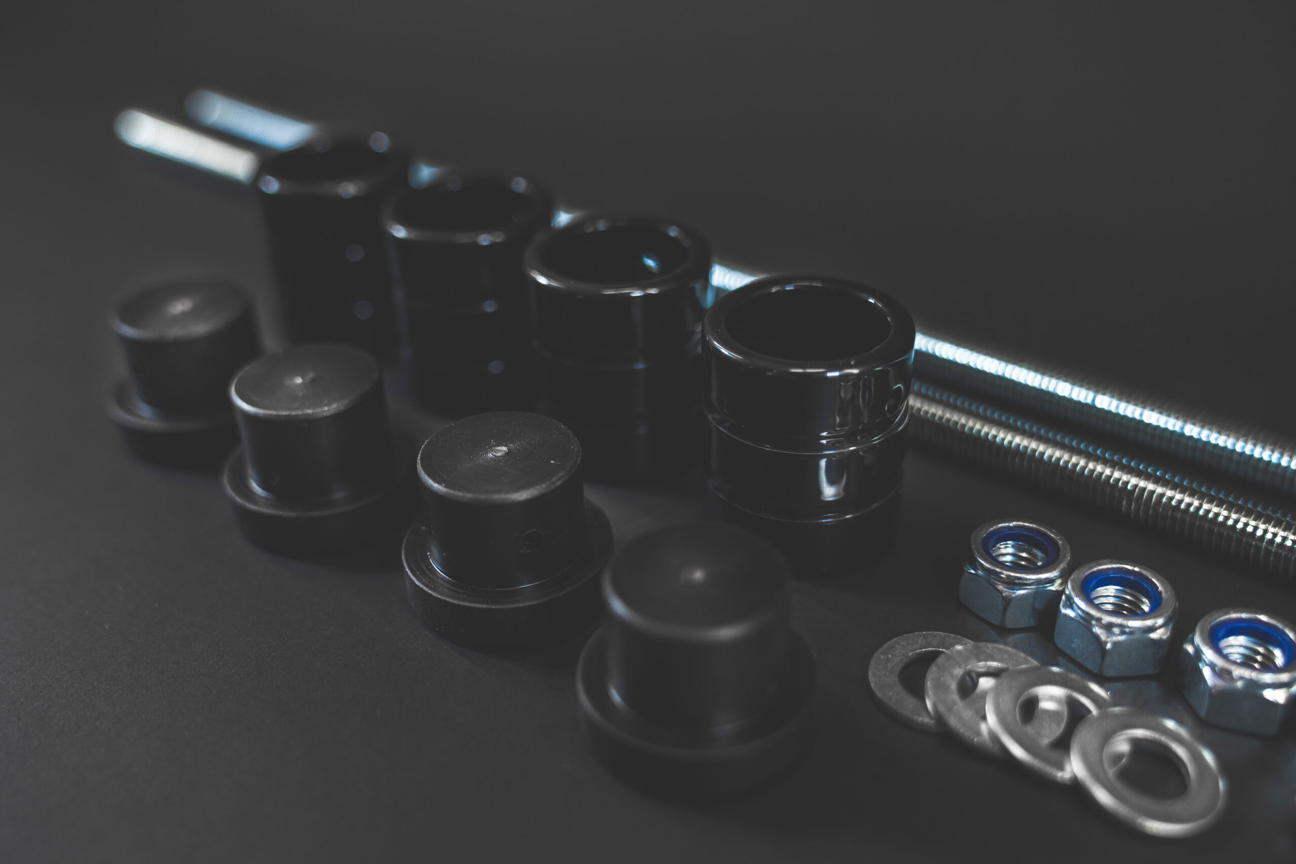 -2 Gewindestangen (M12, bedeutet der Durchmesser eurer Achsen sollte innen 12mm betragen um die Sturzpads verbauen zu können. Ansonsten könnt ihr aber auch M10 oder M8 Gewinde Stangen nutzen. Diese sind aber nicht im Lieferumfang enthalten!)